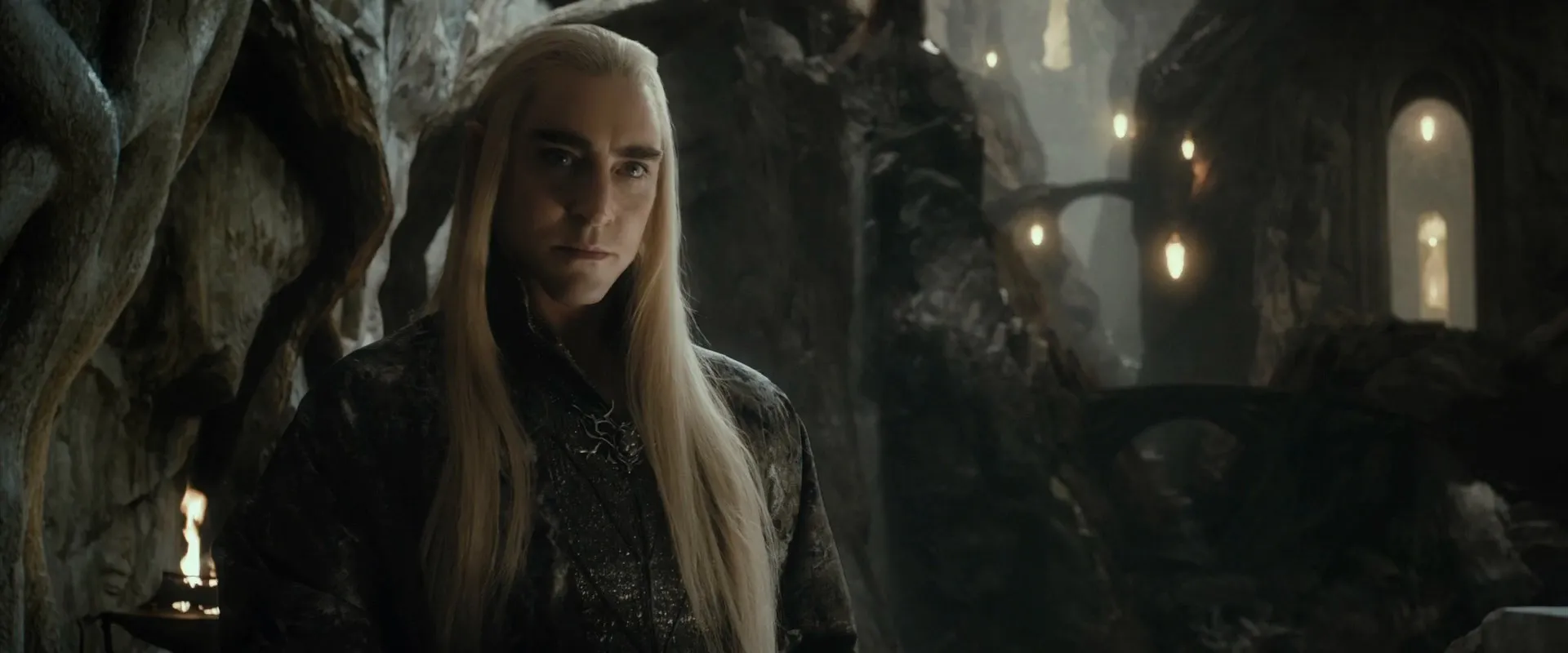 Cast: Ian McKellen as Gandalf, Martin Freeman as Bilbo Baggins, Richard Armitage as Thorin Oakenshield, Benedict Cumberbatch as Smaug / Necromancer, Orlando Bloom as Legolas, Evangeline Lilly as Tauriel, Lee Pace as Thranduil, Luke Evans as Bard / Girion, Stephen Fry as The Master of Laketown, Ken Stott as Balin, James Nesbitt as Bofur, Antony Sher as Thrain (Extended Edition), Mikael Persbrandt as Beorn, Sylvester McCoy as Radagast, Aidan Turner as Kili, Dean O'Gorman as Fili, Graham McTavish as Dwalin, Adam Brown as Ori, Peter Hambleton as Gloin, John Callen as Oin, Mark Hadlow as Dori, Jed Brophy as Nori, William Kircher as Bifur, Stephen Hunter as Bombur, Ryan Gage as Alfrid, John Bell as Bain, Manu Bennett as Azog, Lawrence Makoare as Bolg, Cate Blanchett as Galadriel, Peggy Nesbitt as Sigrid, Mary Nesbitt as Tilda, Ben Mitchell as Narzug, Stephen Ure as Fimbul, Craig Hall as Galion, Robin Kerr as Elros, Eli Kent as Lethuin, Simon London as Feren, Brian Sergent as Spider, Peter Vere-Jones as Spider, Mark Mitchinson as Braga, Kelly Kilgour as Soury, Sarah Peirse as Hilda Blanca, Nick Blake as Percy, Dallas Barnett as Bill Ferny Snr, Matt Smith as Squint, Katie Jackson as Betsy Butterbur, Richard Whiteside as Butterbur Snr, Greg Ellis as Net Mender, Ray Henwood as Old Fisherman, Tim Gordon as Stallkeeper, Jabez Olssen as Fish Monger, Stephen Colbert as Laketown Spy, Evelyn McGee-Colbert as Laketown Spy, Peter Colbert as Laketown Spy, John Colbert as Laketown Spy, Norman Kali as Laketown Spy, Carter Nixon as Laketown Spy, Zane Weiner as Laketown Spy, Allan Smith as Orc Underling, Jack Binding as Laketowner (uncredited), Terry Binding as Laketowner (uncredited), Frank Edwards as Dock Worker (uncredited), Peter Jackson as Albert Dreary (uncredited), Terry Notary as Goblin (uncredited), Emma Smith as Dead Dwarf (uncredited)